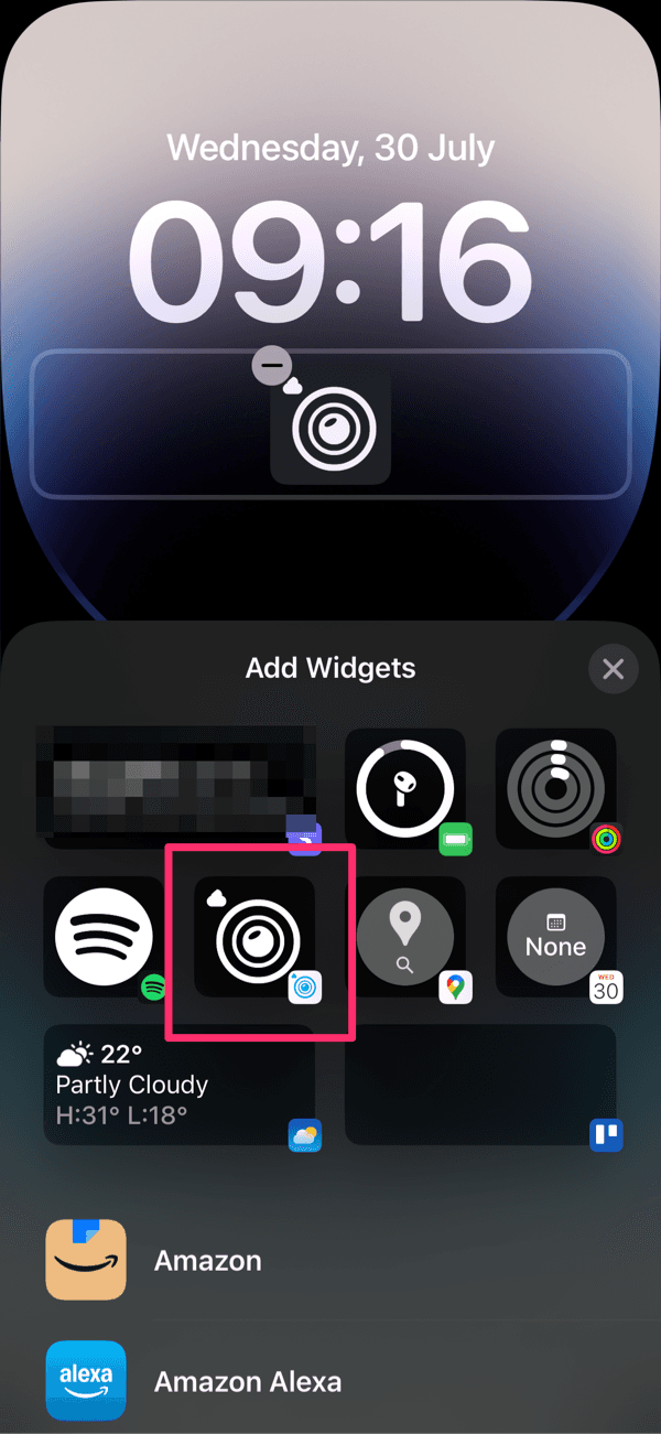Scroll through the list of available widgets, or tap the search bar and type “UploadCam.”